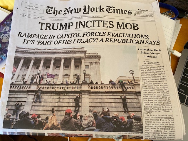 The first week of 2021 was quite the ride. On Jan. 6, a mob of Trump loyalists failed to accept election results, despite multiple recounts, and proceeded to march up to the White House and then scale it, break into it, and wreak havoc. Watching it all unfold on tv, during a plague, was surreal, certainly not something I ever thought I’d see in my lifetime. Later that evening, electoral votes resumed being counted. Something like this hasn’t happened in more than 200 years. Several were killed. Arrests are being made.
